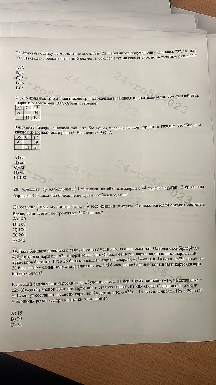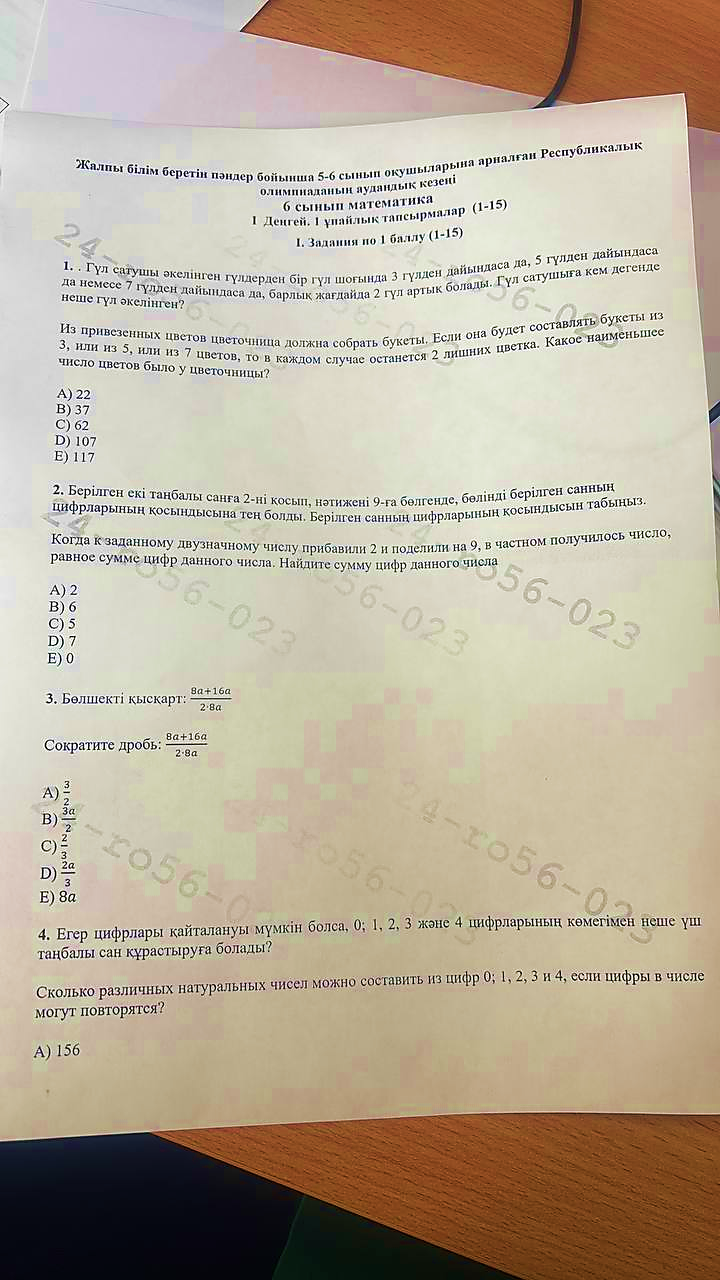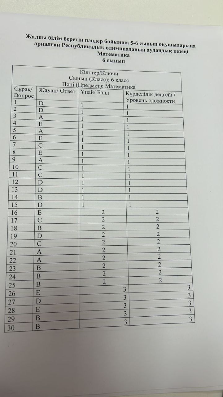 6 сынып математика республикалық олимпияда аудандық кезең. жауабымен