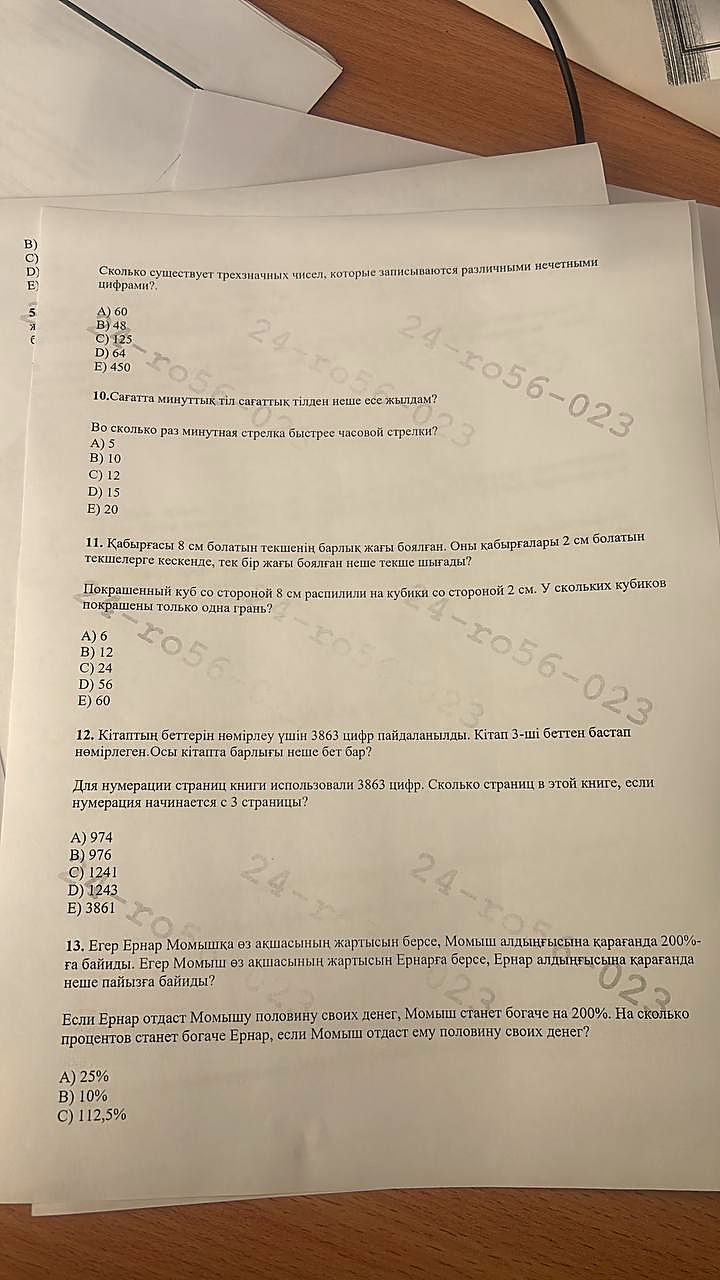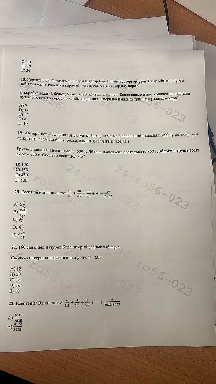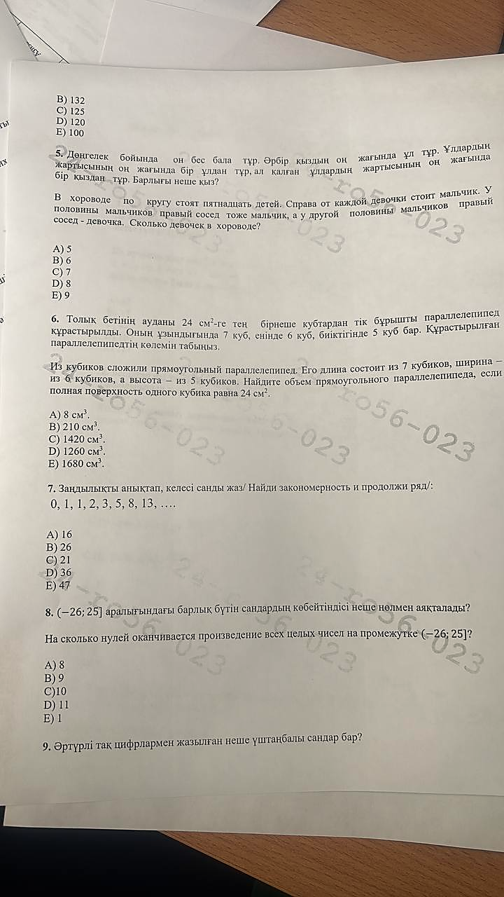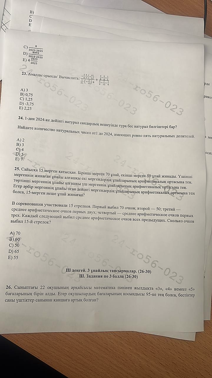 6 сынып математика республикалық олимпияда аудандық кезең. жауабымен