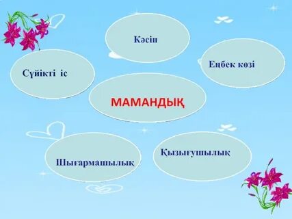 ұнататын мамандық жайында әңгімелес. Жазылым Мамандыққа байланысты кестені