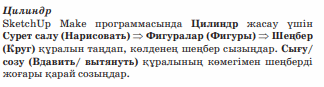 Жобалық жұмыс Жобалық жұмыстың мақсаты: 3D редактордағы обьектілердің модельдерін құру. Жұмыс барысы: - Sketch Up Make программасын іске қосу; -Қажетті шаблонды таңдау: -Керекті редактор құралдарын пайдалану; -Тапсырма бойынша обектіні құрастыру; Практикалық тапсырма.