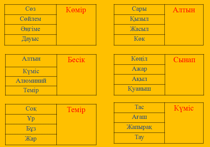 (Әр оқушы өз ойымен бөліседі. Бір-бірінің пікірін толықтырып, пікір алмасады, берілген тапсырманы сұраққа жауап беру арқылы орындайды;) |