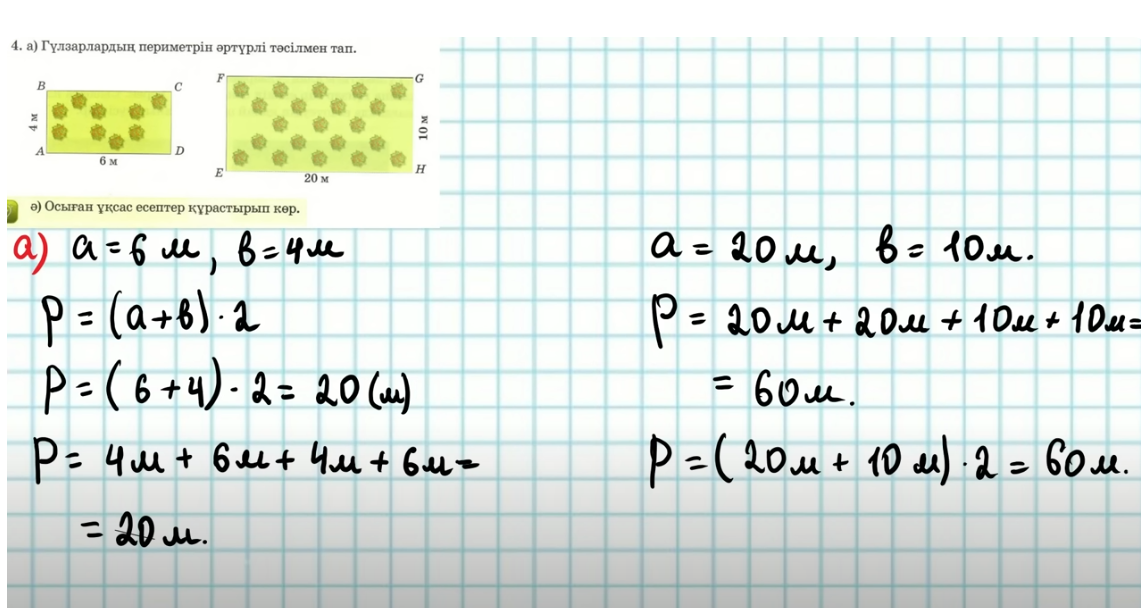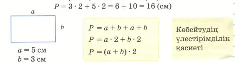 Тіктөртбұрыштың периметрін әртүрлі тәсілмен қалай тапқаныңды түсіндір