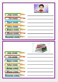 Үй тапсырмасын тексертеді. Кестені толтырып, құрған мәтіндерін оқып береді.