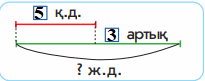 Өткенді пысықтау «Үйшікке орналастыр» ойыны 1-ден 1-ға дейін—қызыл шатырлы үйге 10-нан 100-ге дейінгі сандарды жасыл шатырлы үйге орналастыр Құндылық мақсаты: Қарапайым өлшеулер жүргізу, практикалық есептерді шешуге арналған құралдармен жұмыс жасай алу Жаңа тақырып №1 тапсырма Суретке қарайық. Қанша қызыл доп бар? (Бес). Жасыл доптар жөнінде не айтылған? (3-уге артық екені белгілі). «3-еуі артық» дегенді қалай түсінесіңдер? (бұл тура осындай және тағы 3-еу). Есептің сұрағына жауап беру үшін қандай амалды орындау керек? (Қосу). Есептің қысқаша жазбасы мен сұлбасына мұқият қара. Шешуі: 5+3=8 (д.) Жауабы: 8 жасыл доп. Жұптық жұмыс №2 тапсырма «Жұптас, ойлан, бөліс» әдісі. Есептердің ұқсастығы неде? (Гүлдердің саны бірдей болғандықтан есептер ұқсас) Есептердің айырмашылығы неде? (Берілгендерінің және есептер сұрақтарының орындары ауысуларына байланысты олардың айырмашылықтары бар) Бұлар қандай есептер? (Өрнектердегі сандар да бірдей және өзара байланысты. Мұндай есептерді кері есептер деп атайды). а) Шешуі: 7+2=9 (г.) Жауабы: 9 гүлкекіре ә) Шешуі: 9 – 2=7 (қ.) Жауабы: 7 қызғалдақ ЕБҚ Есепті шығар Альбомда 30 сурет бар. Оның 10 суретін Әлия жинаған. Сырым қанша сурет жинады?