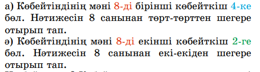 2.1.2.2. Көбейту және бөлу өзара кері амалдар екенін түсіну, көбейту және бөлу амалдарының компоненттері арасындағы байланысты анықтау. 2.5.2.4 көбейту және бөлу амалдарының компоненттері атауларын өрнектерді оқу мен жазуда қолдану |
