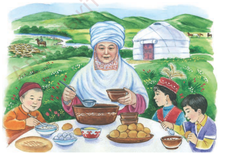 3-тапсырма Дәптермен жұмыс. Суретке қара. Наурыз көжеге қосылатын жеті түрлі дәмді жаз. Ет,айран,тары,қаймақ, бидай,жүгері,тұз. |