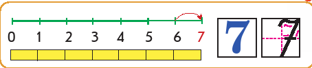 Оқушылар сабақтың тақырыбы және мақсатымен танысады. Жаңа тақырып бойынша, қажетті мәліметтерді есіңе сақтайды. Сандық кесіндіде 6 санынан оң жаққа бір қадам жасадық. Оқушылар 6 санын 1-ге арттырғаннан 7 саны алынады деп түсіндіреді. |