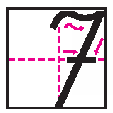 7 цифры қалай жазылатынын анықтап қара (баспа негіздегі дәптердегі жазу). Арнайы педагог 7 цифрын тақтада, дәптерге жазып көрсетеді.