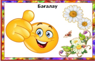 Мұғалім оқушыларды «Жапондық бағалау» әдісі арқылы бағалайды. Яғни «Дұрыс келісемін», «Толықтырамын». |
