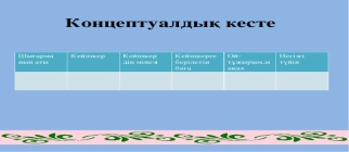 Жазылым Айтылым Сұрақтарға жауап береді. «Концептуалдық кестені» толтырады.