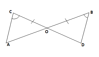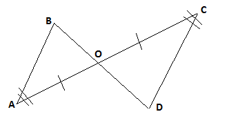 Задача № 1. Отрезки AB и CD пересекаются в точке O. Докажите равенство треугольников ACO и DOB если известно что угол ACO равен углу DBO и BO=CO.
