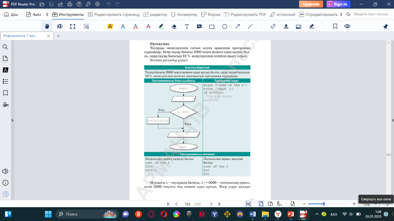 Дескриптор: - Шарт тексеру операторының қысқа және толық жазылу құрылымдарының біріне пайдалануға бағытталған тапсырма мәтінін құрайды. - Құрастырған тапсырманың шешу жолын көрсетеді. |