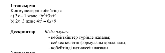 қысқаша көбейту формулаларын білу және қолдану |
