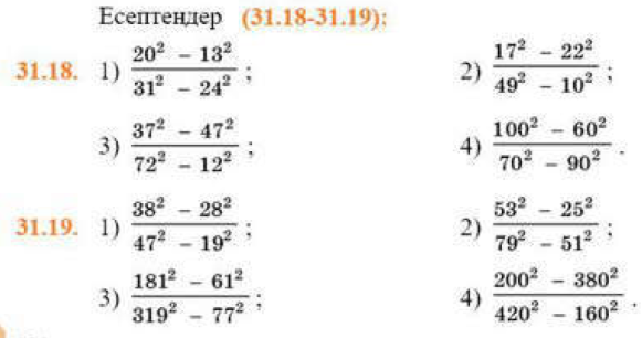 Оқушылар жұпта келесі өрнектердің мәнін квадраттардың айырмасы формуласын қолданып, табады: