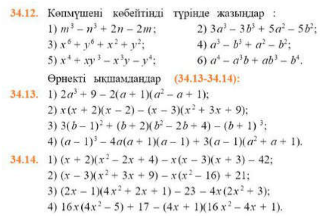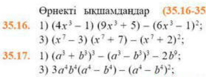 Тапсырма. Жаттығу 1. Алгебралық өрнектерді көбейтінді түріне келтіріңіз.