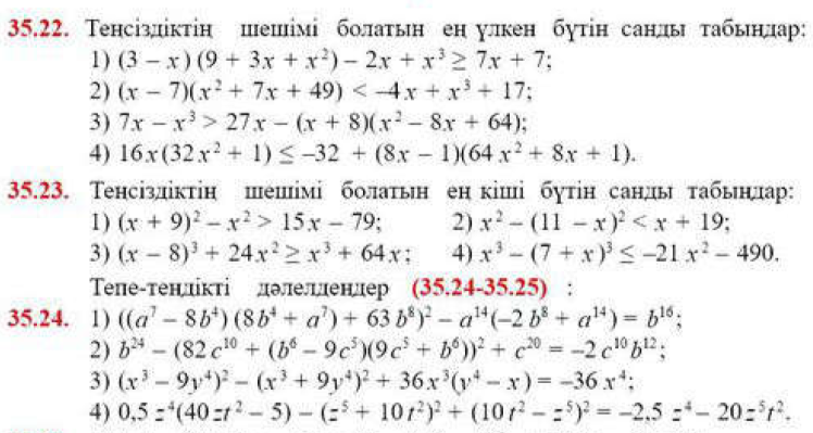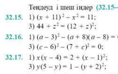 (х+4)2 өрнегі х2 –тан 32 см2-ге артық екені белгілі. Теңсіздік: