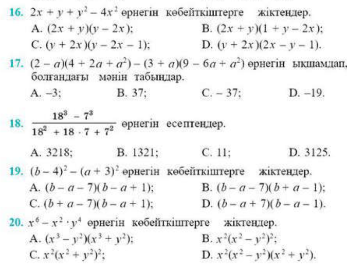 Жаттығу 3. Көпмүшені көбейткіштерге жіктегенен кейінгі дұрыс өрнекті таңдаңыз.