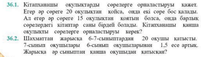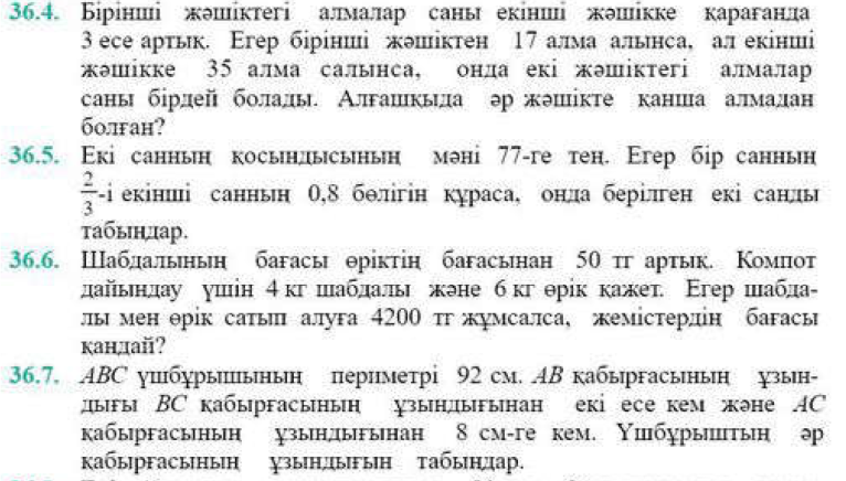 Оқулықтан есептер шығару:-тен ББЖБ |