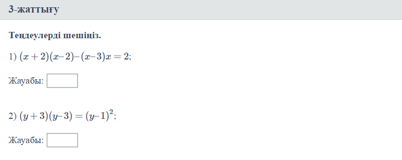 Дескриптор: -қысқаша көбейту формуларынды біледі; -дұрыс жауабын табады.