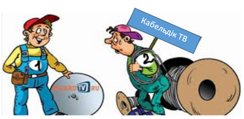және 3. Сіз телевизиялық жабдықтарды орнату бойынша екі шеберді көріп тұрсыз.
