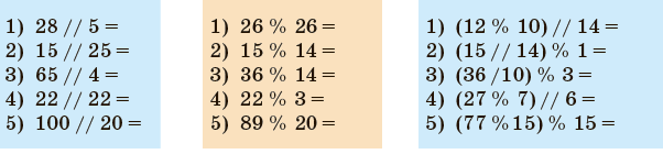 Өрнектің бүтін бөлігін, қалдығын есепте. (2)