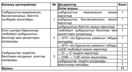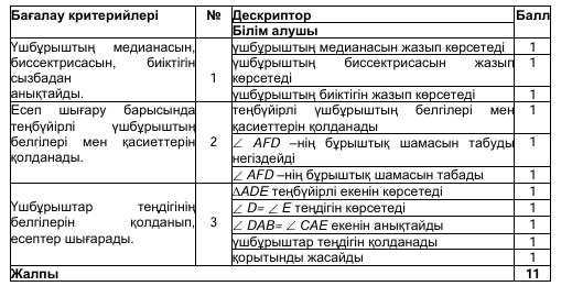 «ҮШБҰРЫШТАР» бөлімі бойынша жиынтық бағалау»