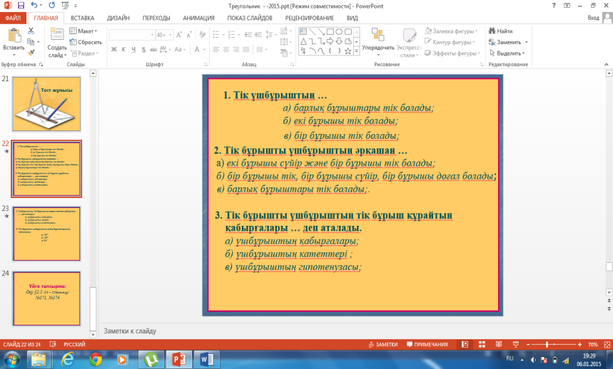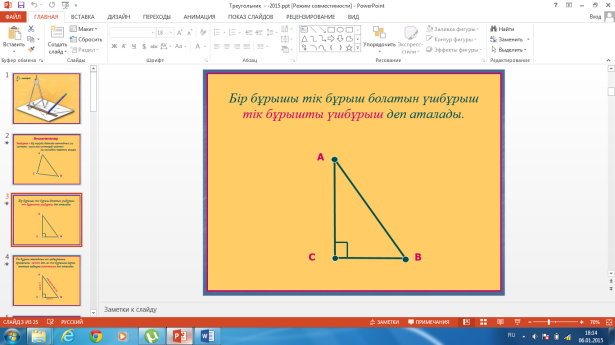 7 сынып геометрия 3 тоқсан 14 сабақ Тікбұрышты үшбұрыштардың теңдігінің белгілері. Тікбұрышты үшбұрыштың қасиеттері