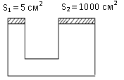420. Көлденең қималары әртүрлі екі қатынас ыдыстар сумен толтырылған. Олар поршеньмен жабылған. Жіңішке ыдыстың көлденең қимасының ауданы кең ыдыстікінен 100 есе кіші. Кіші поршеньге салмағы 10 Н жүк қойылды. Екі жүк те тепе-теңдікте болу үшін үлкен поршеньге қойылатын жүктің салмағы (Поршеньдердің салмағы ескерілмейді).