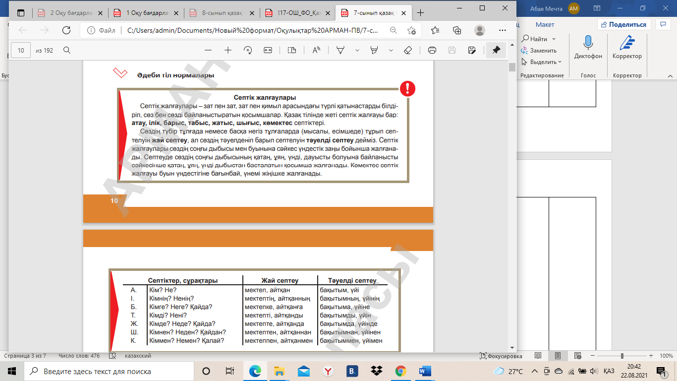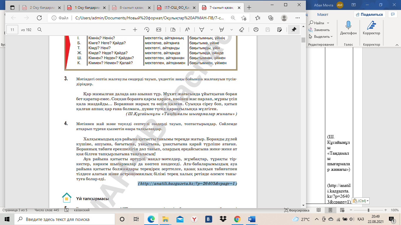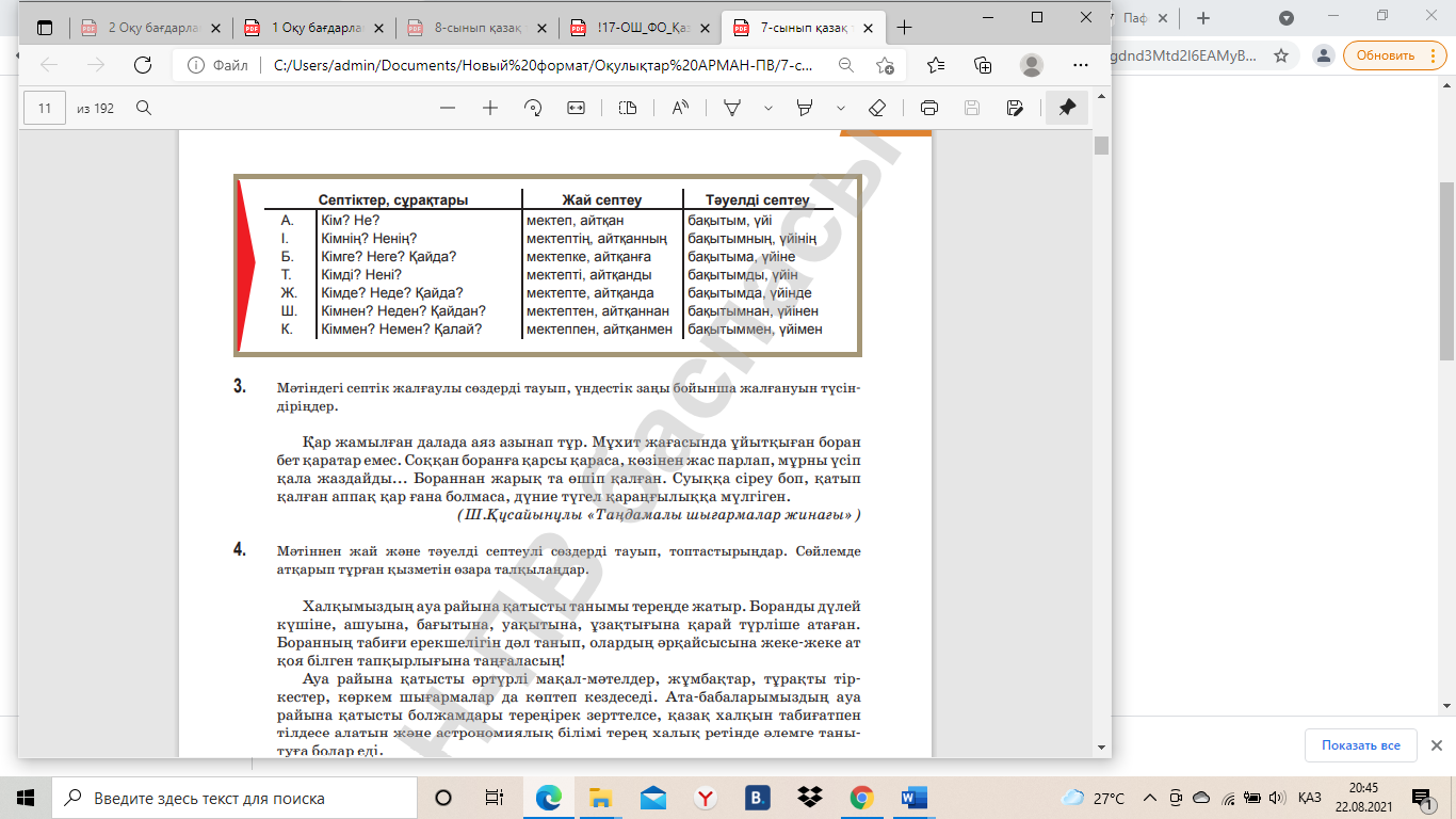 Грамматикалық тапсырмалар орындайды. Мәтіндегі септік жалғаулы сөзді тауып, үндестік заңы бойынша жалғануын түсіндіріңдер.