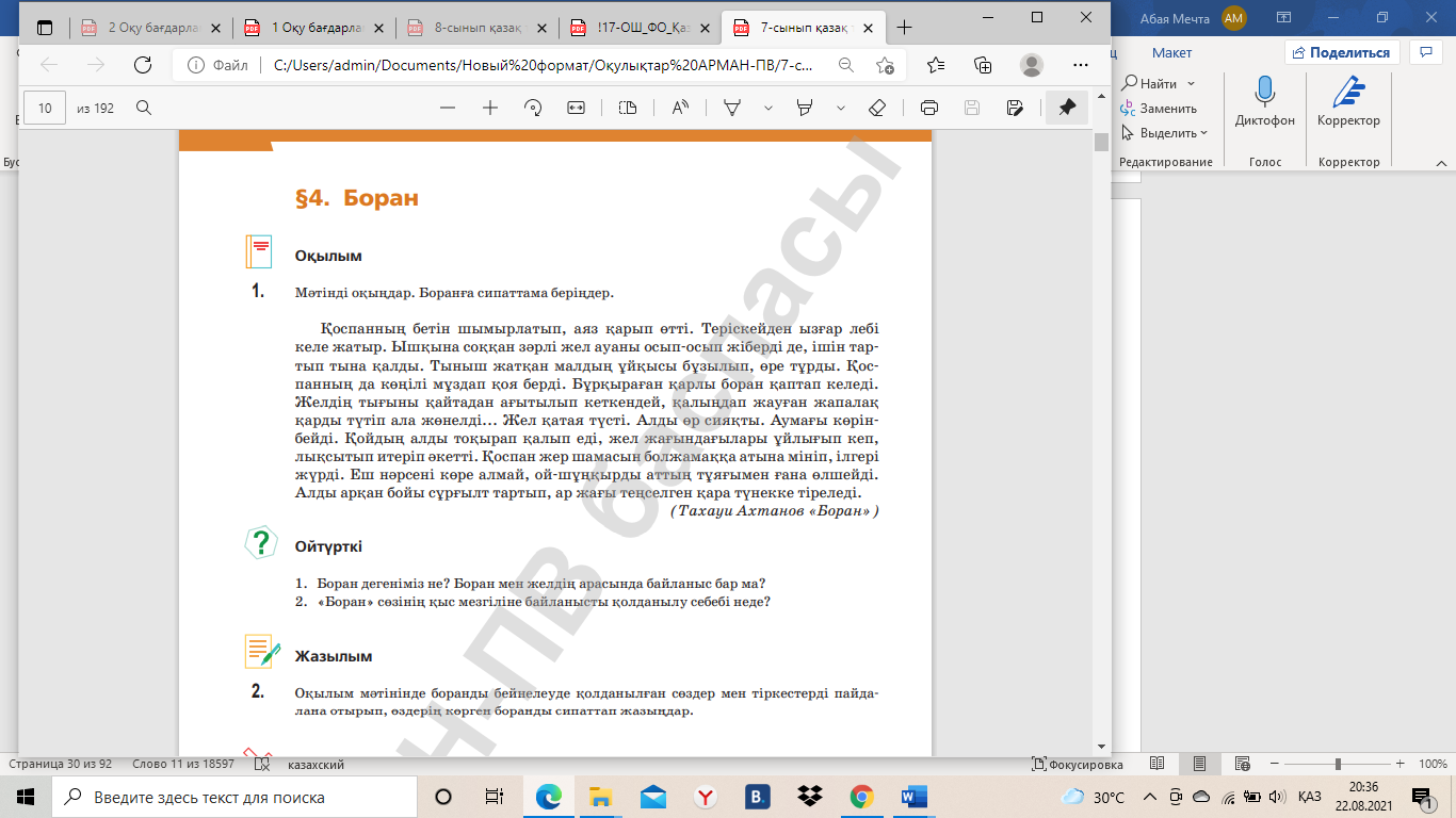 Сабақтың басы Сабақтың ортасы: 30 мин. |