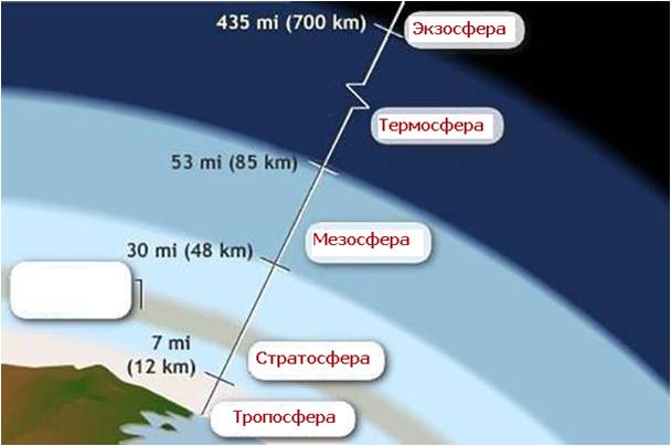 9. Суретте атмосфераның қабаттары көрсетілген.