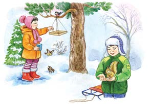 ФС тапсырмасы 2-жаттығу. Суретпен жұмыс жүргізіледі. Мұғалім мұнда қыс мезгілі екеніне, қыста жануарлар мен құстардың тіршілігінде қандай өзгерістер болатынына, адамдар тарапынан оларға жасалатын қамқорлыққа жетекші сұрақтар қоя отырып, алға жетелейді
