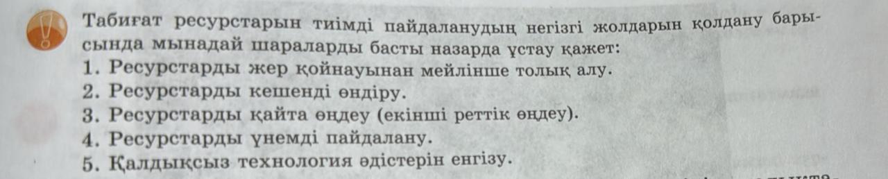 абиғат ресурстарын тиімді пайдаланудың негізгі жолдары: