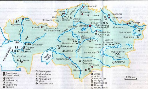 7.Қазақстанның пайдалы қазбалары картасын пайдаланып жанғыш пайдалы қазбалардың 3 ірі кен орнын анықтаңыз.
