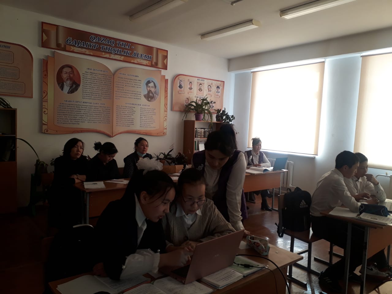 Оқушылар бір-біріне тілек білдіреді, ҚБ |