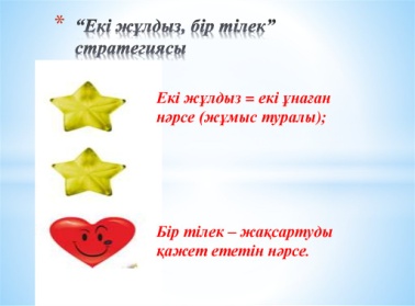 Жаңа сөздерді тыңдайды, оқиды, мұғалім соңынан қайталайды. Оқушылар жаңа сөздермен сөз орамдарын, қарапайым сөйлем құрастырады. Жаңа сөздерді сөздік дәптерге жазады. |