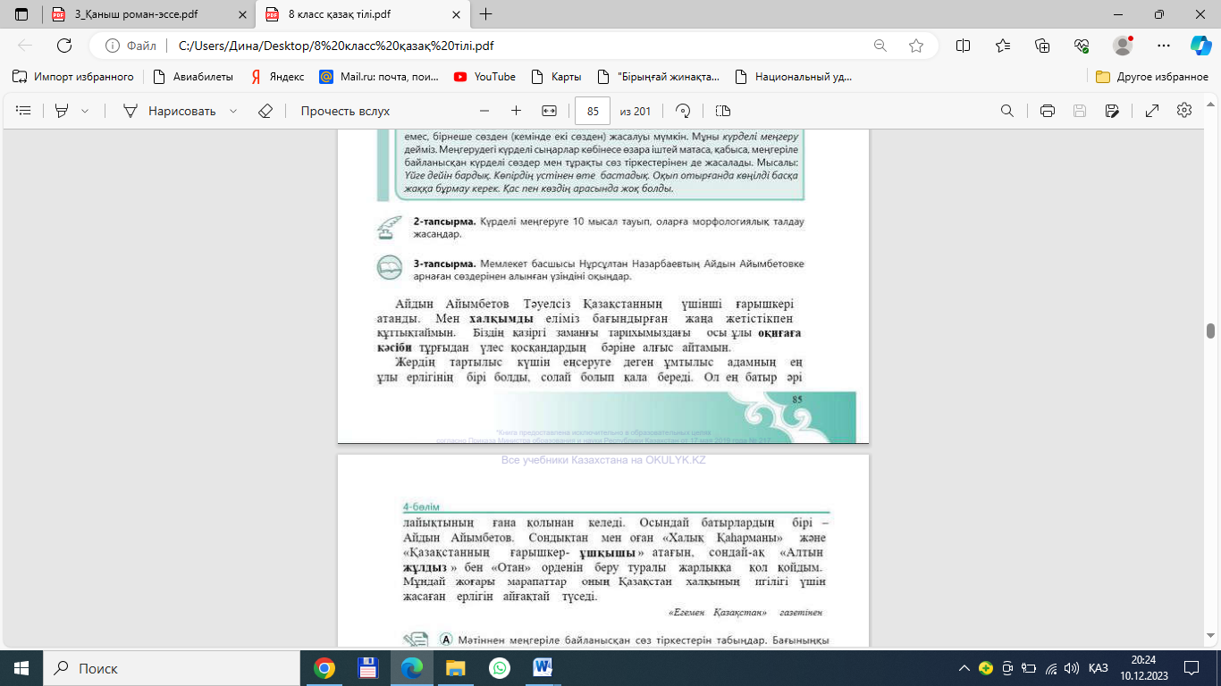 8.1.4.1 көркем шығармалардан алған үзінділерді өз көзқарасын дәлелдеу үшін орынды қолдану |
