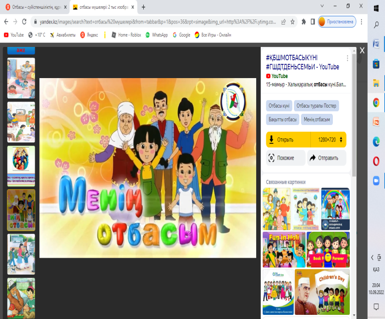 Сергітку сәті Өлең мазмұнына сәйкес қимыл- қозғалыстар жасалады. Ғажайып сөздер - Отбасы, қуаныш, шаттық, мейірімділік, қамқорлық, сүйіспеншілік. ЕБҚ: оқушыға жеке жұмыс кезінде қасындағы сыныптастары және мұғалім диалог арқылы қолдау жасайды «Попс формуласы»: Отбасы – сүйіспеншіліктің, құрмет пен ынтымақтастықтың ошағы 1-қадам: «Менің ойымша...» 2-қадам: «Себебі мен оны былай түсіндіремін...» 3-қадам: «Оны мен мынадай фактілермен, мысалдармен дәлелдей аламын...» 4-қадам: «Осыған байланысты мен мынадай қорытындыға келдім...» |
