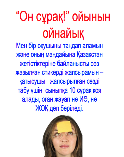 -Бүгінгі тақырыбымыз не туралы болуы мүмкін? Әңгімелеу ЕБҚ оқушыға дереккөздің форматын үлкейтіп, қолдану Оқушыларды сабақтың тақырыбы және мақсатымен таныстыру |