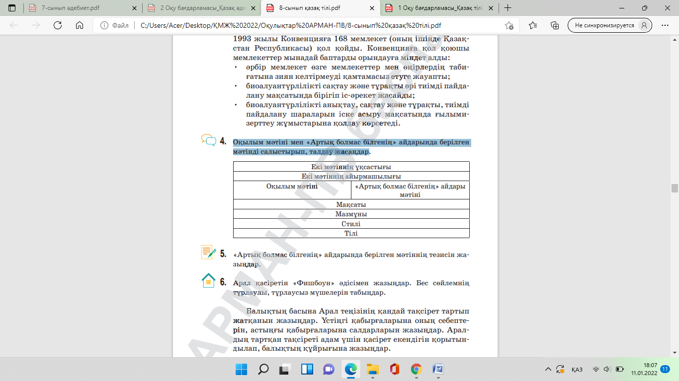 ҚБ ОҚЫЛЫМНАН КЕЙІН. 4-тапсырма. Оқылым мәтіні мен «Артық болмас білгенің» айдарында берілген мәтінді салыстырып, талдау жасаңдар.