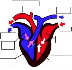 жүрек бөліктері мен қантамырларының аттарын сәйкес әріппен берілген