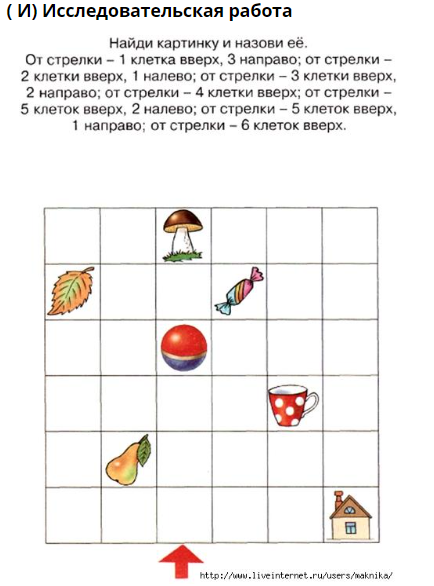 - Осылайша сіз өзіңіздің картаңызды салдыңыз, онда заттар бағыттарға сәйкес келетін нүктелермен белгіленеді. "алдыңғы", "сол", "артқы" дәптердегі жұмыс: машиналарды бояу.