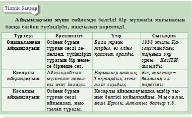 - ғылыми және халықаралық терминдерді, ғылыми деректерді орынды қолданады -диалог, монолог, полилогта өз ойын дәлелді, жүйелі жеткізеді - сөйлем ішінде бірыңғай мүшелер мен айқындауыш мүшелерді тауып, сөйлем құрайды |