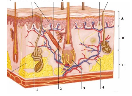 2-тапсырма (a) Суреттегі А,В және С әріптерімен белгіленген тері құрылысына атау беріңіз және қызметін сипаттаңыз