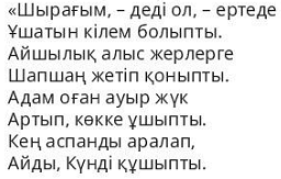 3-тапсырма. Қарттың әңгімесінен ертедегі адамның жақсы өмір туралы қиялын тауып, оқы.