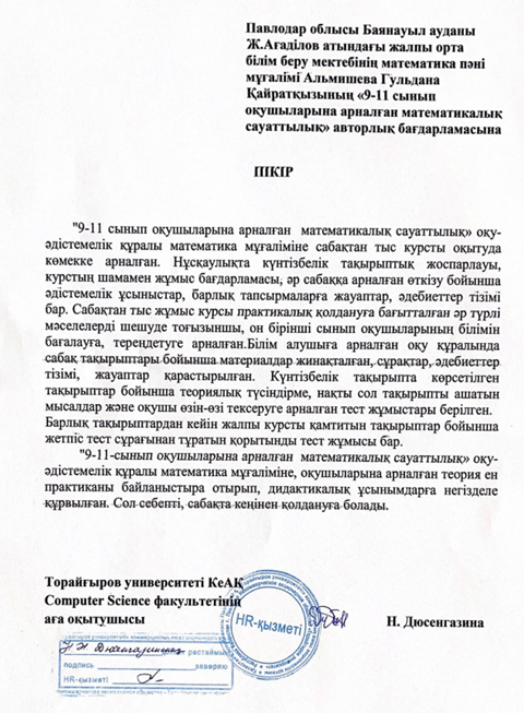 9-11– сынып оқушыларына арналған «Математикалық сауаттылық» авторлық курсы