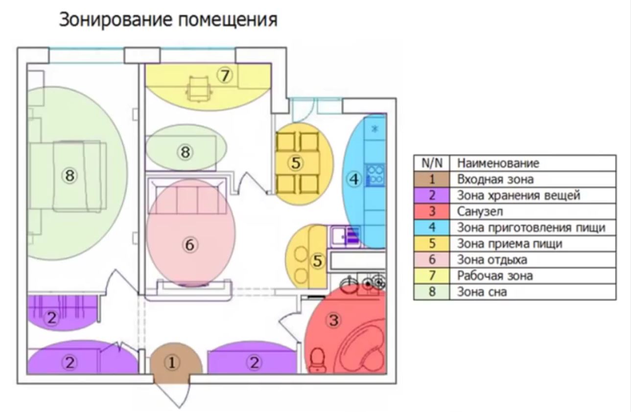 Пәтердің негізгі қызметтік аумақтарын аймақтарға бөлу
