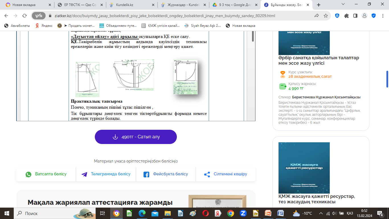 Электронды презентация 2слайд Иықты бұйым құрылымы: https://www.youtube .com/watch?v=lgqSBDll9Y Жеңі тұтаспішімді иықты бұйым негізіндегі сызба құрылымы https://www.youtube .com/watch?v=chp_ 2R_uxJo Сайт «Калькулятор» - |