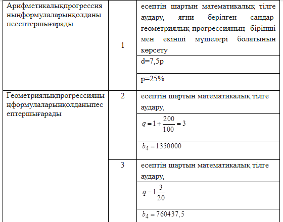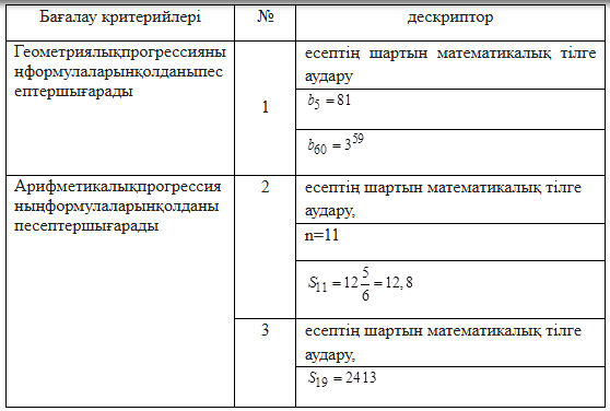 9.4.2.2геометриялық және арифметикалық прогрессияларға байланысты мәтінді есептерді шығару; |