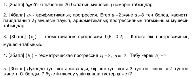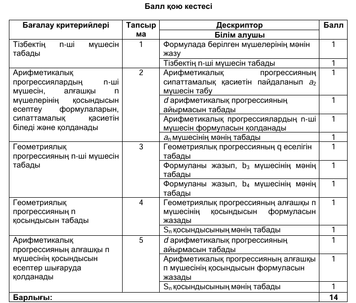 «Тізбектер» бөлімі бойынша жиынтық бағалау